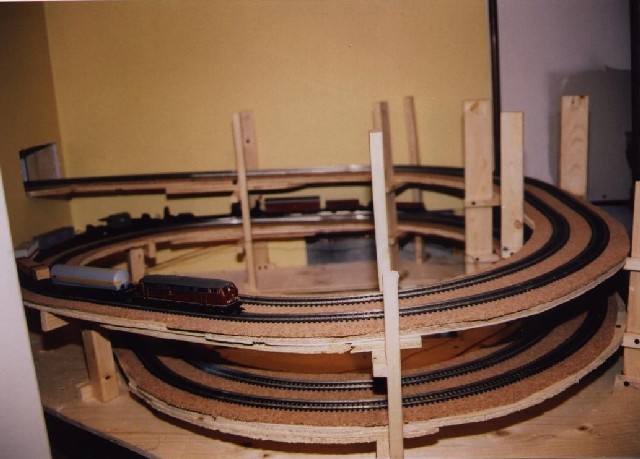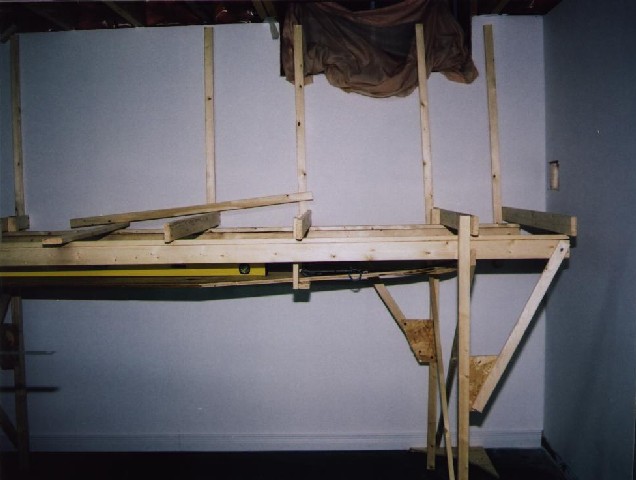 Benchwork for the helix construction - a little unorthodox, but it is in an odd shaped area.