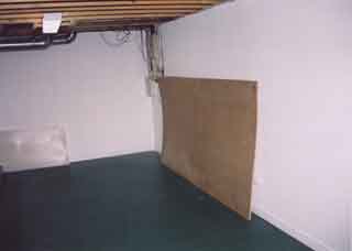 The benchwork is the classic L-Girder construction. The joists have backdrop supports already installed as they also support some of the staging level roadbed. Notice the hole in the wall - it is one of two used to allow the trains to enter and exit the furnace room to traverse the helix to/from the staging levels.